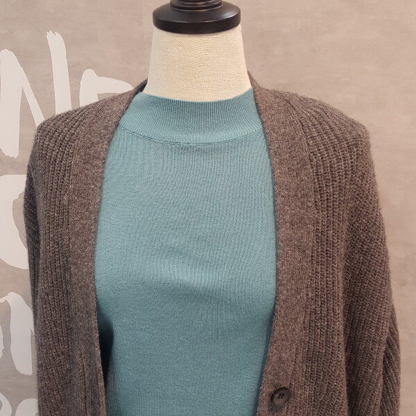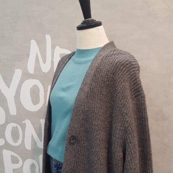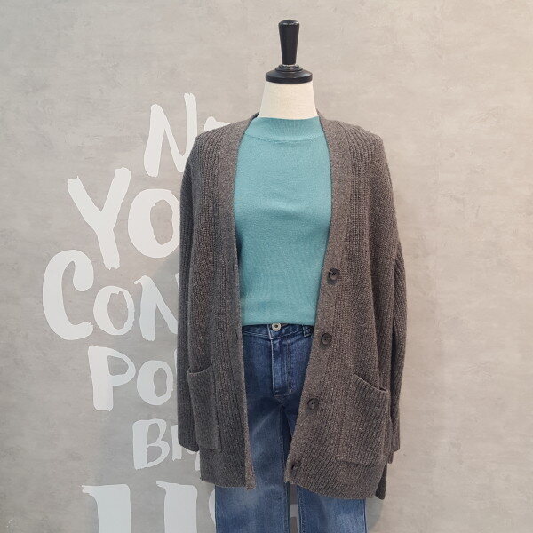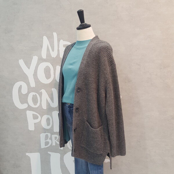볼드한 짜임이 캐주얼한 드롭 숄더의 여유로운 실루엣의 울 가디건입니다