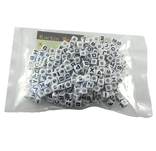 Rockin Beads Brand, 300 Mixed Black on White Acrylic Alphabet /Letter "A-z" Cube Spacer Beads 7mm Approx 1/4 Inch Sold Per Pack of 300