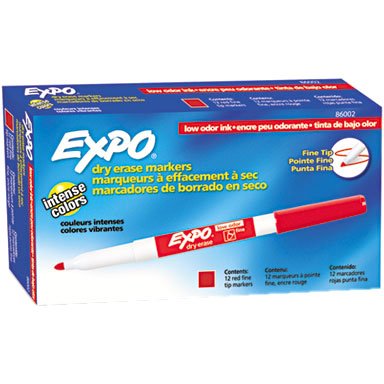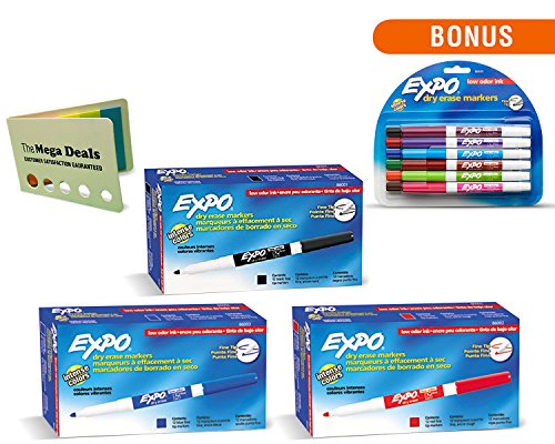 Expo Fine Point Dry Erase Markers Bundle – 5 Items: 12 Black Markers, 12 Red Markers, 12 Blue Markers, 12 Assorted Color Markers, Bright Colorful Rectangle Sticky Note Pad – Low Odor