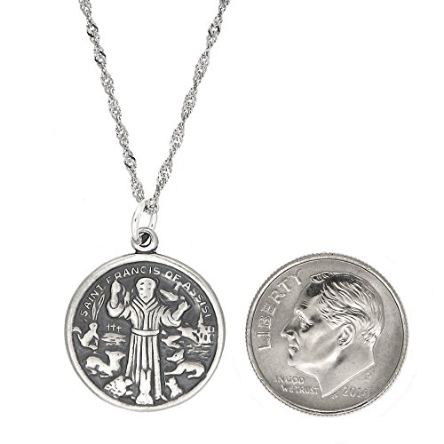 -. Title : Sterling Silver Oxidized One Sided Saint Francis of Assisi Charm with Singapore Necklace