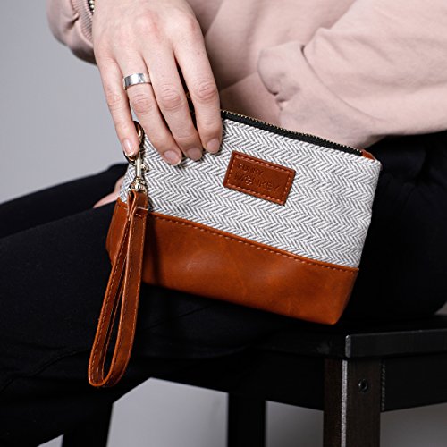 Studio : Funky Monkey Fashion Publisher : Funky Monkey Fashion Product Description Greta Wristlet Collection: ? Horizontal Brown and Cream Herringbone Brown Vegan Leather Bottom This zippered clutch is a beautifully coordinated faux leather bottom with a coordinating tweed fabric top. Each is fully lined with a black fabric. Each also has a removable wrist strap with antique brass hardware, allowing you to secure around your wrist or tuck in a larger tote. The small size is a great way to carry all your cards, cash, and lipsticks for those on the go moments in life! The medium and Large size works great as a "hold all" wristlet from your phone to cards and must have everyday items! 0