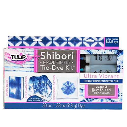 The Tulip Shibori Made Simple Tie-Dye Kit provides the easy-to-use tools, premium One-Step Dyes and technique guide needed to create three trend-forward shibori designs! Shibori dye resist techniques have fascinated generations of crafters, fashionistas and textile artists for centuries, and now you can easily recreate this Japanese art of folding, twisting and binding at home! The highly-concentrated indigo-inspired dyes included in this kit make bold, beautiful designs that hold their incredible vibrancy wash after wash. Innovation, premium quality and ease of use make Tulip One-Step Tie Dye "America's Favorite Tie Dye" brand.Feature
