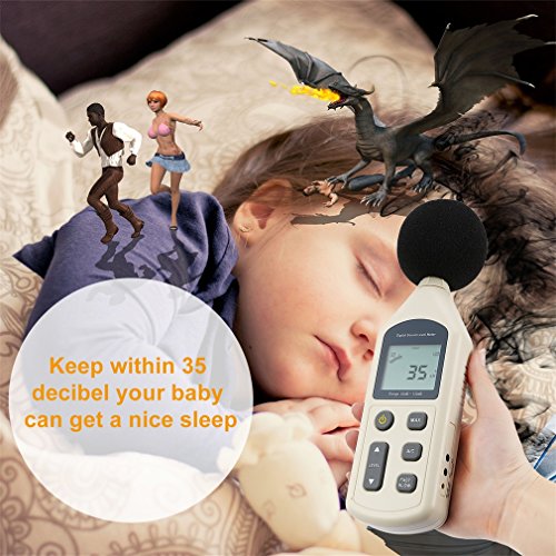 - Compact & Lightweight Design - This 10 inch length digital noise meter has novel design, compact size. Sound Noise Level Meter 30-130dB noise monitor decibel pressure calibrator detector logger for indoor / outdoor. Suitable for monitoring noise levels in factories, offices, theaters and audio systems