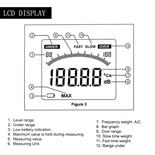 - Data Hold Function - Large LCD screen display, 10 minutes Auto Power Off or Manual Shut Off by Pressing the Power Button for Two Seconds. Digital sound level meter decibel logger tester noise meter