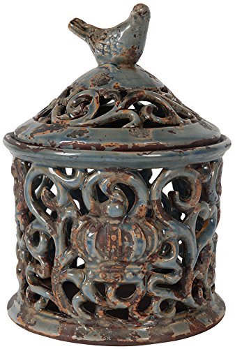 A&B Home 66972-BLUE Decorative Jar With Bird Finial, Blue, 8.9 by 14-Inch