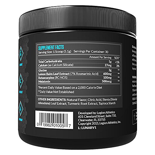 -. Binding : Health and Beauty -. Brand : Legion Athletics -. EAN : 0019962010057 -. Feature : THE BEST NATURAL SLEEP AIDS: Improve your sleep quality with melatonin and lemon balm extract. / FALL ASLEEP FAST: Research shows melatonin and l-glycine help you fall asleep faster & sleep better. / SAFE & EFFECTIVE INSOMNIA RELIEF: Imagine being able to fall asleep, stay asleep, and wake up fresh. / HERBAL SLEEP SUPPLEMENTS THAT WORK: Forget OTC sleep aids. Choose a natural sleep supplement instead / 100% SATISFACTION GUARANTEED: We hope you love Lunar, but if you don't, you get your money back. -. IsAdultProduct : 0 -. Label : Legion Athletics -. Manufacturer : Legion Athletics -. ProductGroup : Health and Beauty -. ProductTypeName : HEALTH_PERSONAL_CARE -. Publisher : Legion Athletics -. Studio : Legion Athletics -. Title : Legion Lunar Natural Sleep Aid Supplement - Best Herbal Sleeping Aids for Insomnia Relief & to Fall Asleep Fast. With Melatonin, L-Glycine, Lemon Balm Extract & Rutaecarpine. Safe & Healthy. 30 Svgs. -. UPC : 019962010057