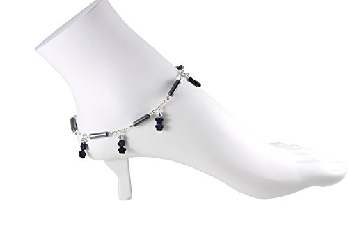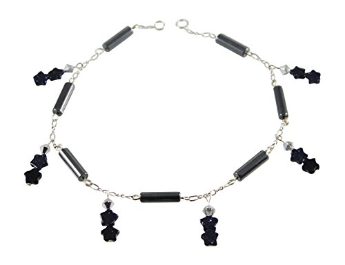 -. Title : Station Style Hematite Anklet with Blue Goldstone Dangling Stars - 9 3/4