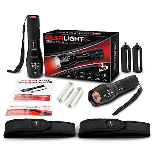 GearLight S 1000 LED Tactical Flashlight [Multipack] This powerful and practical, general purpose flashlight is the perfect gift for a father, husband, wife, scout, or college student for any occasion. The tough, military-grade aluminum body makes it suitable for extreme conditions indoors or outdoors. You can count on it during storms, floods, power outages, earthquakes, and natural disasters. Portable and small, this torch is convenient to pack in your bag, glove compartment, camping gear or survival kit. The flash and SOS functions are life savers when doing roadside repairs or signaling for help. Highly reliable and easy to use, it is the perfect flashlight to have while fishing, hiking, hunting, exploring, or even taking the kids out trick-or-treating. FLASHLIGHT FEATURES:- LED Bulb - Brighter and More Efficient than a Typical Incandescent One