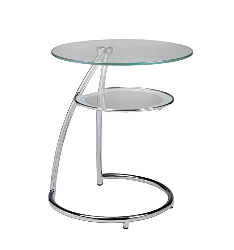 -. Feature : Two glass levels for placing magazines, books, cups, etc. / Rubber feet allows for easy movement while providing grip / Chrome-finished steel frame; tempered glass