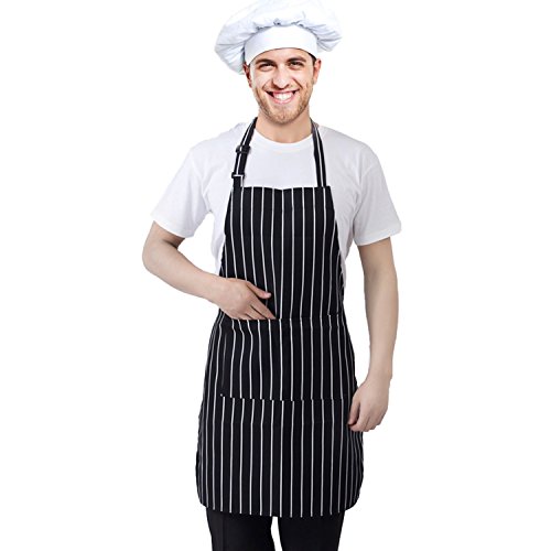 TRIXES Kitchen Chef Cooking Apron Black & White Stripe