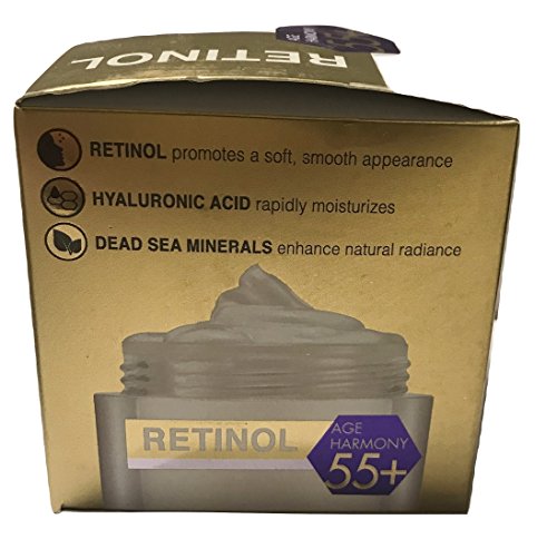 Age Harmony Retinol 55+ Night Cream, 1.69 fl. oz. Retinol & Hyaluronic Acid. Enriched with Shea Butter, Vitamins and Dead Sea Minerals. 1.69 fl. oz. 50 ml, Made in Israel. Precisely formulate to meet the needs of mature skin.Feature