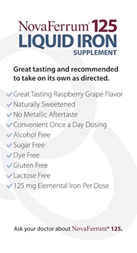 NovaFerrum liquid iron is naturally sweetened and does not contain the extras you see in many liquid iron supplements. Our product is free of sugar, alcohol, dye, lactose, soy, and gluten. Unlike most liquid iron supplements that use iron salts, our patent-pending formula uses a Polysaccharide-Iron Complex. NovaFerrum has a "great tasting" raspberry-grape flavor and does not have the unpleasant metallic aftertaste you find in most other iron liquid iron supplements.