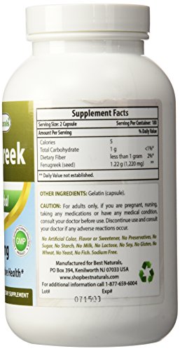 -. Title : Best NatuBest Naturals -- Organic Fenugreek -- 610 mg -- GMO-free -- Preservative-free -- Allergen-free Organic Fenugreek Seed Powder in Capsules