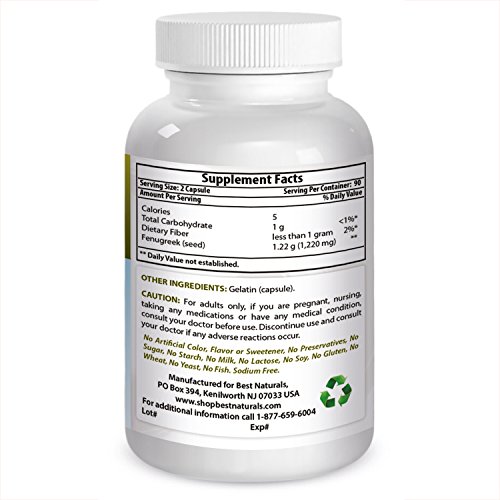 -. Feature : Supports healthy blood sugar levels -- Supports healthy cholesterol levels / Supports lactation and post-natal health -- Supports digestive and colon health -- Helps manage symp of menopause / Made with organic, natural powder from Fenugreek seeds -- Free of solvents, pesticides, and preservatives / Verified free of allergens by an independent, third-party lab / All Best Naturals products are manufactured in accordance with Good Manufacturing Practices (GMP), among the highest standards in the world -- Proudly Made in USA -- Purity & Potency Guaranteed