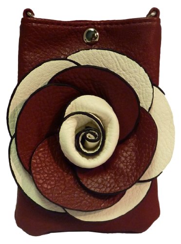 Boutique To U Women's Flower Cell Crossbody Small Maroon/White