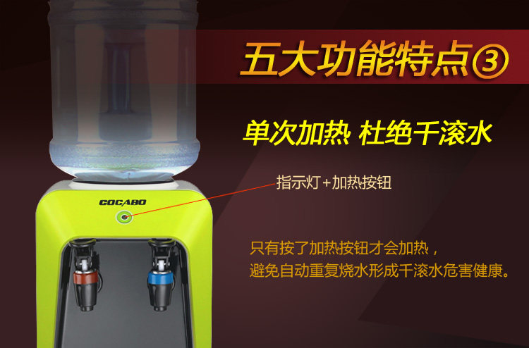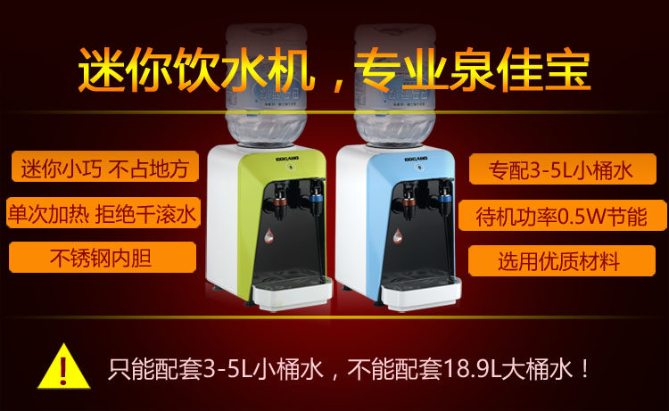1、如果您想买一个配套5L左右小桶水的迷你机,就选它! 2、如果您想买个放心,质量好,售后有保证,专业的,就选它! 注意:这款是单次加热升级版,不会重复烧水,只有按了加热按钮才会启动加热。这样就不会像市场上常见饮水机,水凉了就自动烧,平均每隔半小时烧开一次从而形成千滚水。 3、其他就看价格了,没问题就选它,有问题就选传统版自动加热的,198元那款。