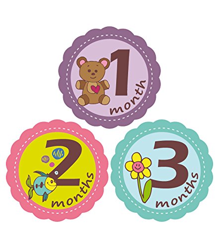 • Flower shape pre cut Baby Month Stickers So it will look like it is stitch to the Onesie or shirt. Each Set includes 12 X 4 ' Infant month stickers to cover your baby first year.