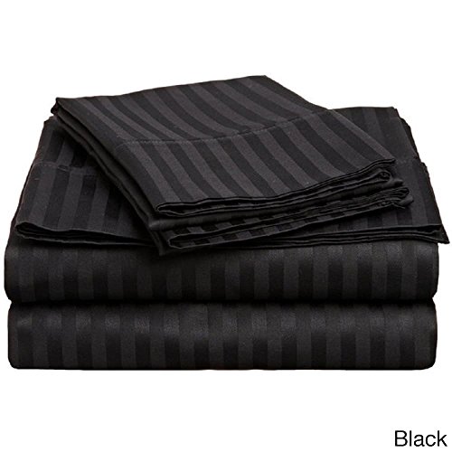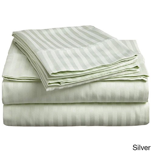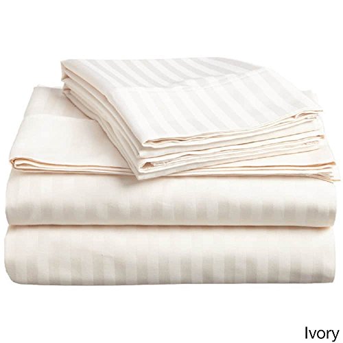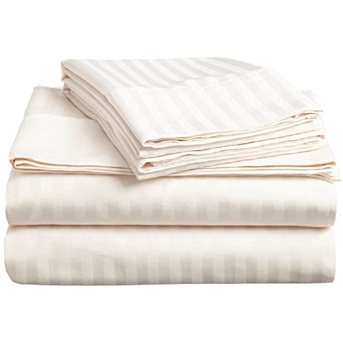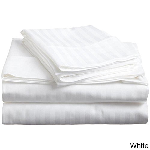 Vivendi 500- Thread Count Luxury Supima Cotton Damask Stripe Sheet Set- Queen, White