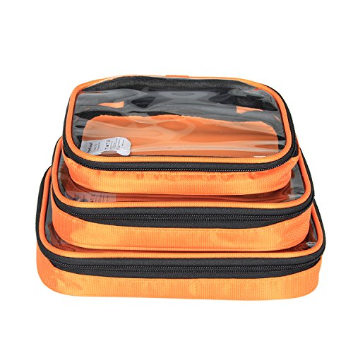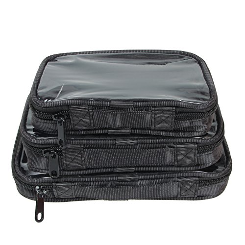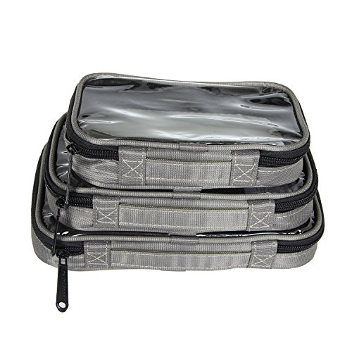 Flexible plastic poly top that allows easy viewing of what you have put inside each, zipper opens on 3 sides for easy access to interior