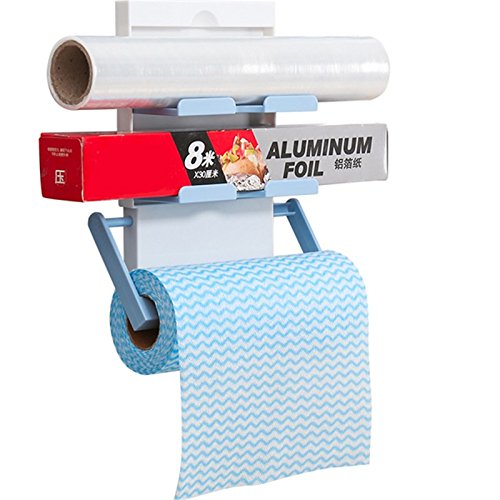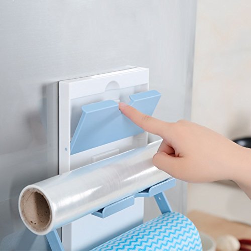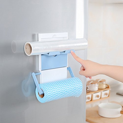 Katoot@ Fridge Storage Rack Magnet Roll Paper Towel Holder Shelf 3 Layers Cling Film Storage Rack Seasoning Pots For Kitchen Accessories (Blue)