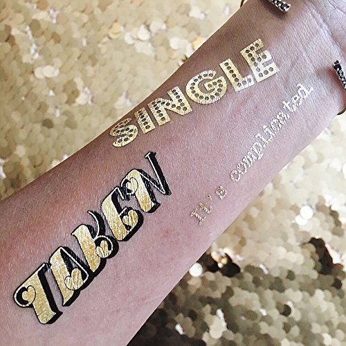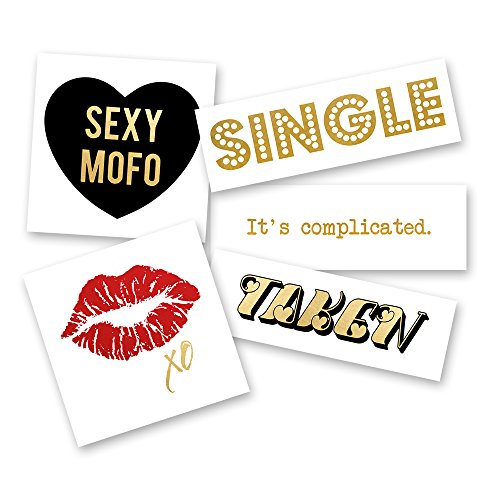 - ⚡️ Set includes a mixed variety of 25 fun and festive metallic temporary Flash Tattoos: KissXo (5), Sexy Mofo (5), Taken (5), Single (5) and It's Complicated (5)