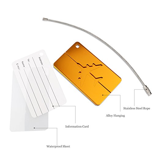 Features - Color: 7 different colors. - Material: Aluminum alloy. - Dimension: about 7.5*4.4cm. - You can write your NAME and ADDRESS on the name card, for easy to identify your luggage from others. - Come with a string and a screw connector for closely connecting your luggage. - Bright colours help you to pick out you luggage at your first sight, so don't worry about take the luggage by mistake.