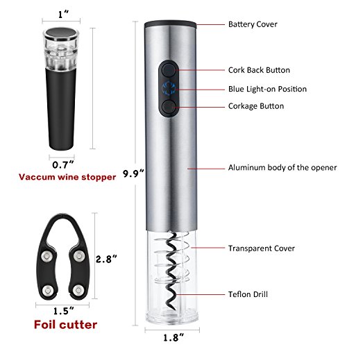 Package: 1*Electric Wine Opener(Stainless Steel), 1.77*9.85 inch, 0.63 lb