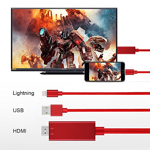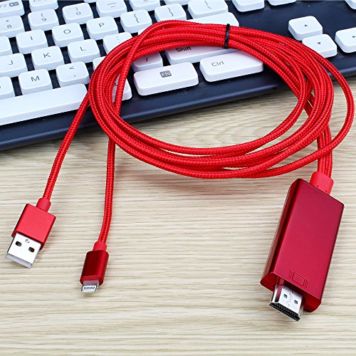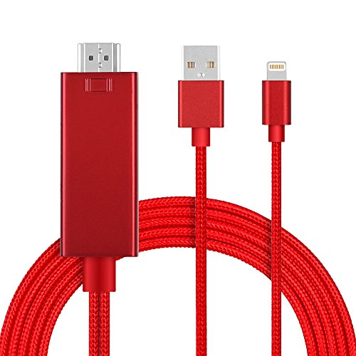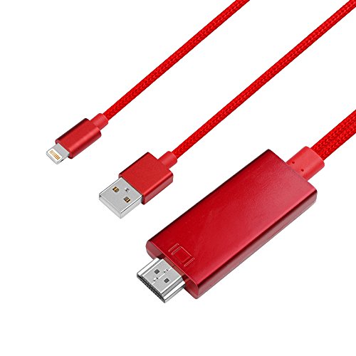 MOSTOP Lightning to HDMI Cable Support iOS Lightning 8 pin to HD 1080P HDTV Video Cord - Plug & Play for iPhone 7 7 Plus, iPhone 6 6 Plus, iPad Mini 4 3 2 Air 2 Pro (red)