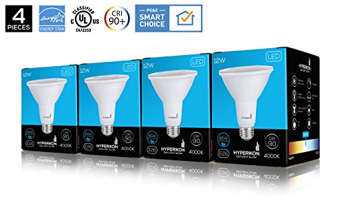 Hyperikon PAR30 LED Bulb, 12W (75W equivalent), 940lm, 4000K (Daylight Glow), CRI90+ Flood Light Bulb, 40 degree Beam Angle, Medium Base (E26), Dimmable, UL and ENERGY STAR - (Pack of 4)