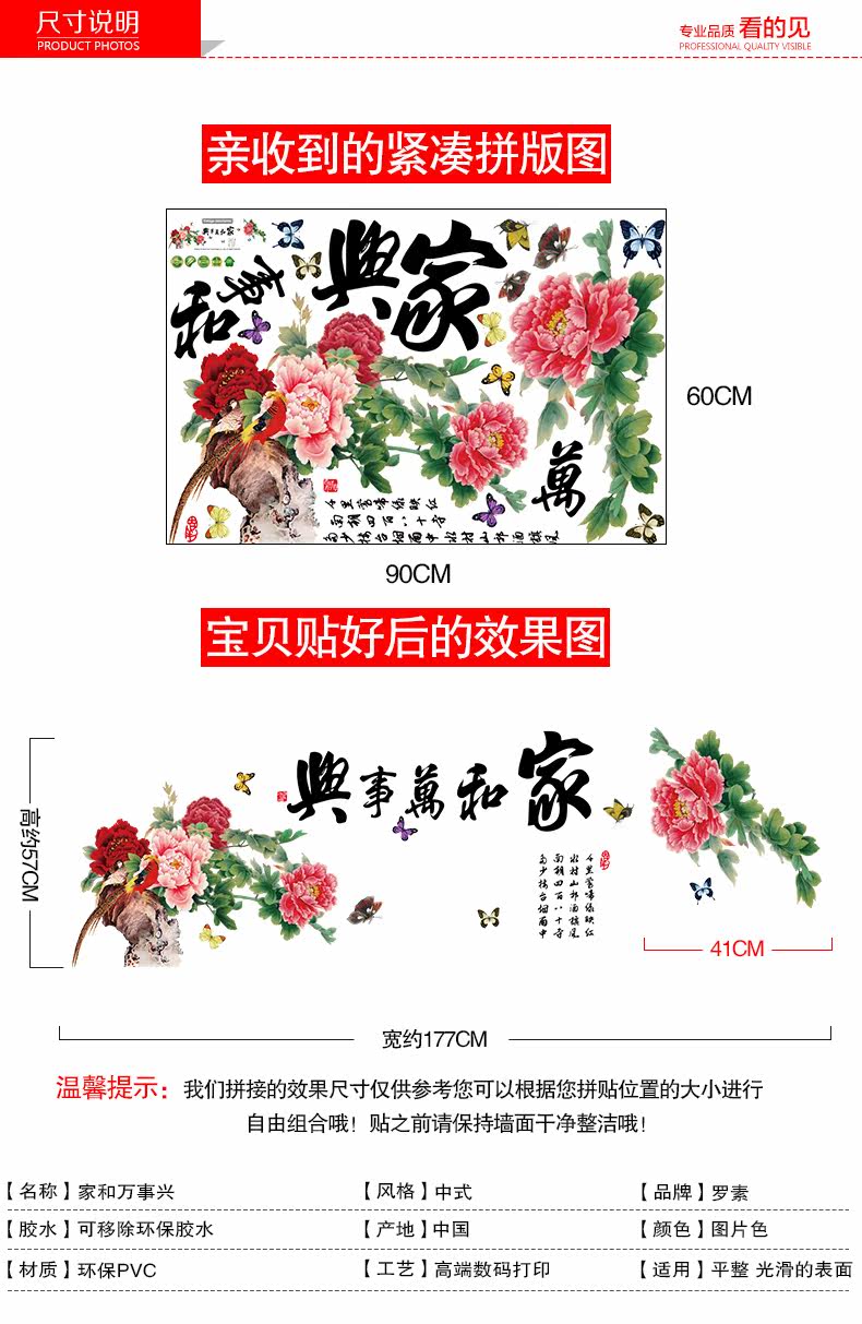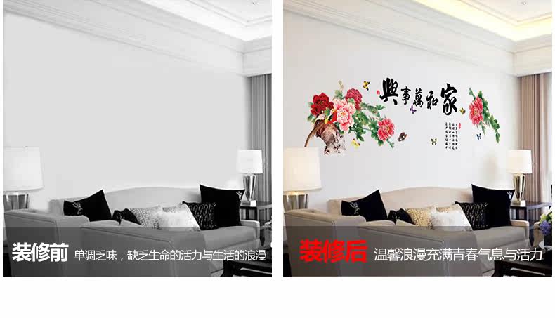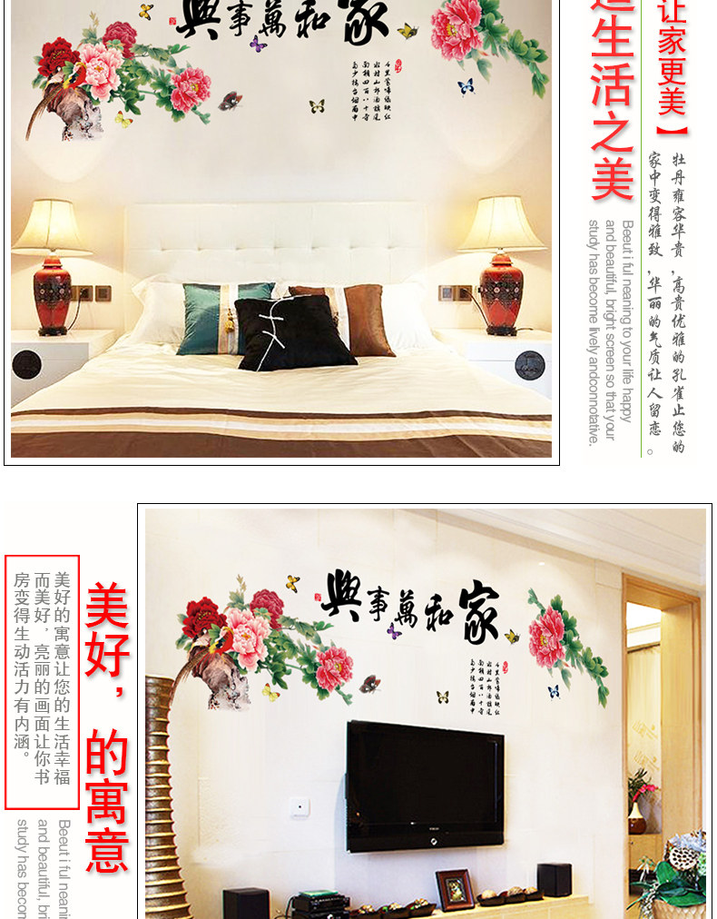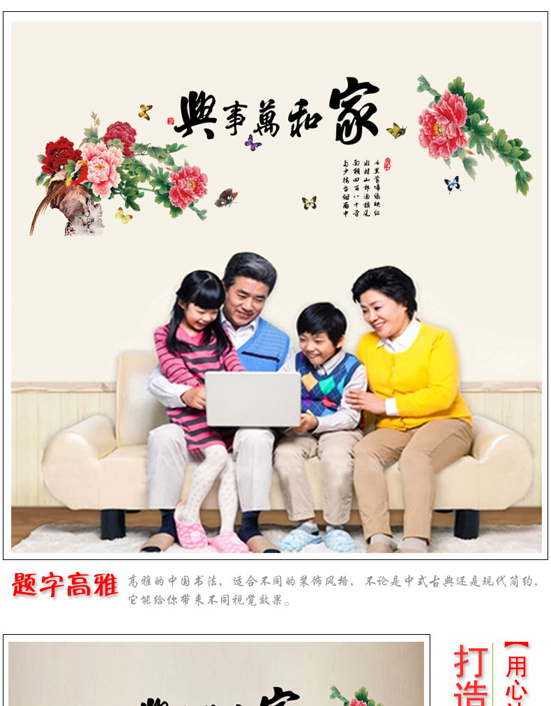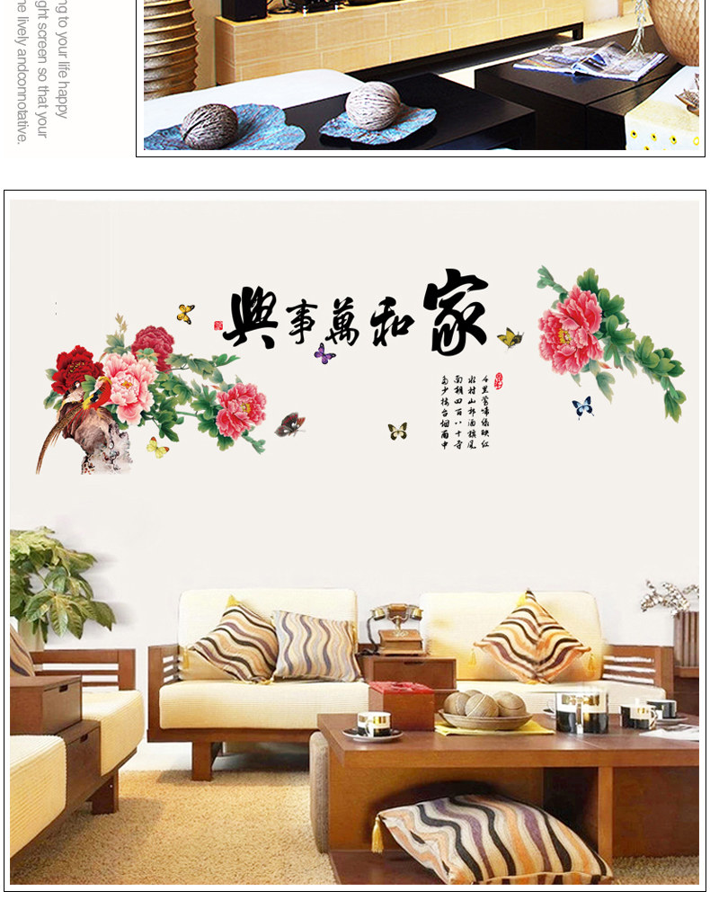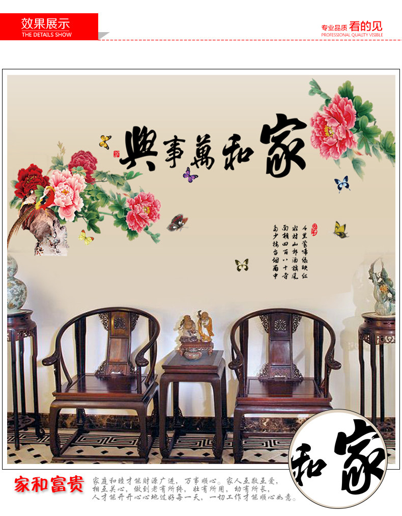 中国风家和万事兴客厅卧室电视背景墙壁贴纸 可移除墙贴装饰贴画