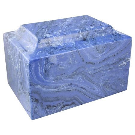 Mystic Blue Classic Cultured Marble Urn by MacKenzie Vault, Blue Stone Adult Sized Cremation Urn for Burial