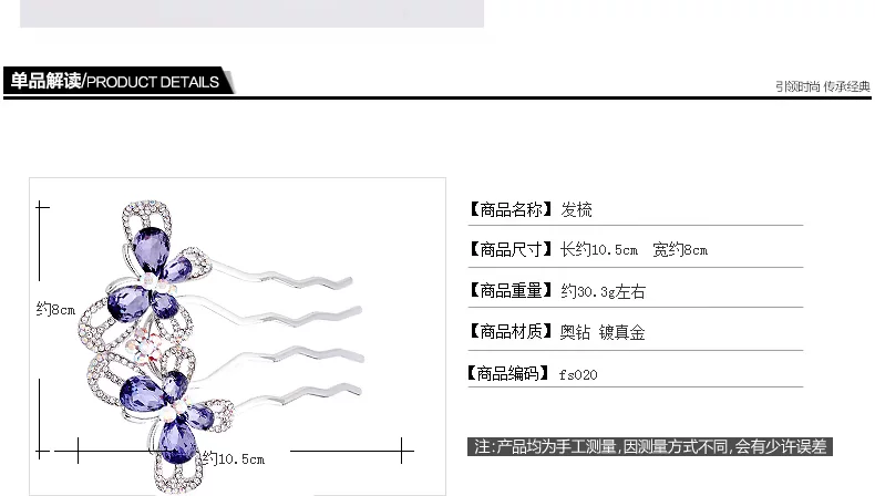 Crystal hair bow hair ornaments Korean dish made of fine bridal hair accessories hair clip hairpin insert comb Korean