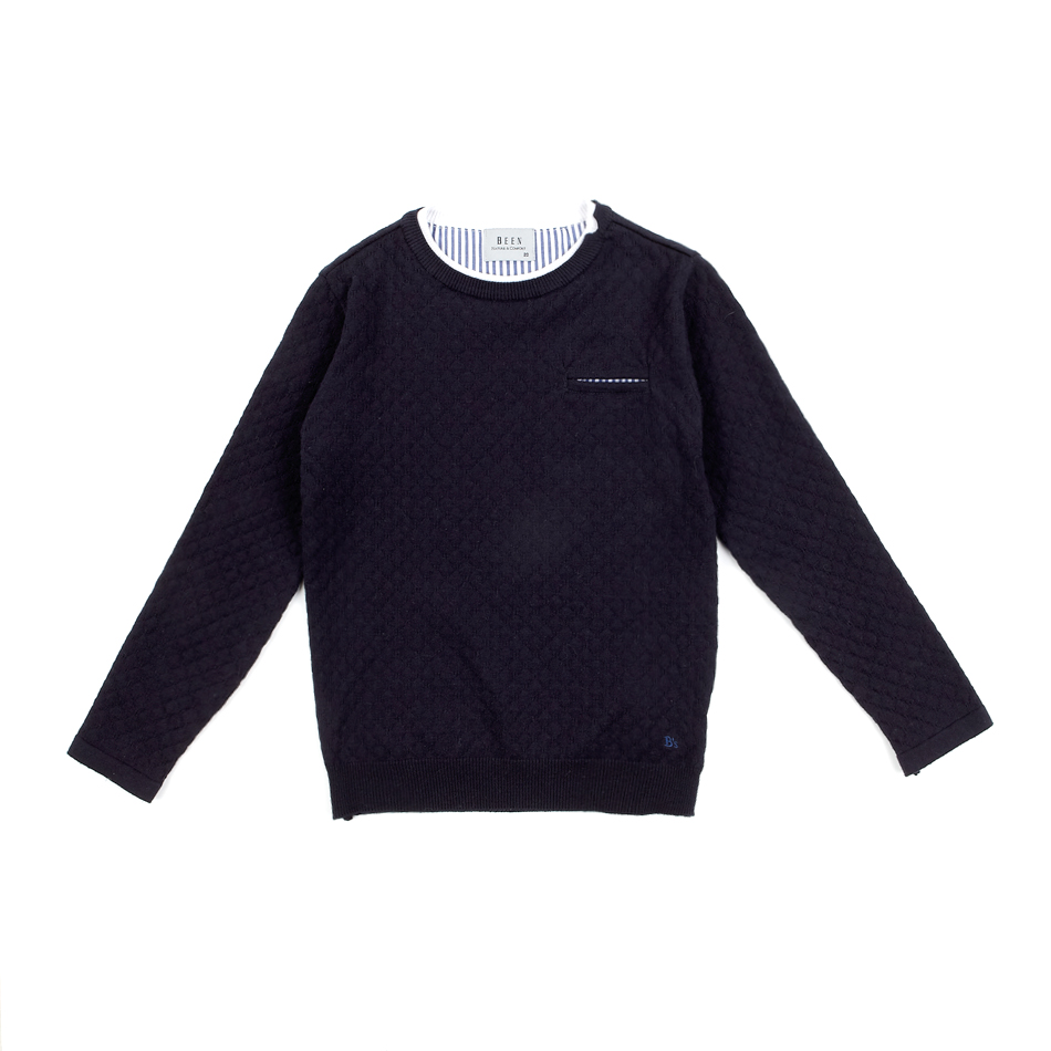 면이 섞인 스웨터 느낌으로 착용감이 좋으며 목부분의 화이트 배색과 포켓의 스트라이프 배색과 함께 스마트해 보이는 이미지를 주는 세련된 니트 아이템입니다. | ||||||||