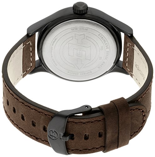 -. Feature : Black ion-plated watch with round dial featuring logo and date window / Quartz movement with analog display / Indiglo dial lighting