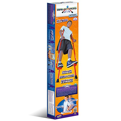 Walkaroo Balance Stilts quickly adjust to accommodate anyone (age 6 to adult) with a height of 54 to 78 inches (4½ to 6½ feet) tall, up to maximum weight of 220 Lbs (100 Kg)