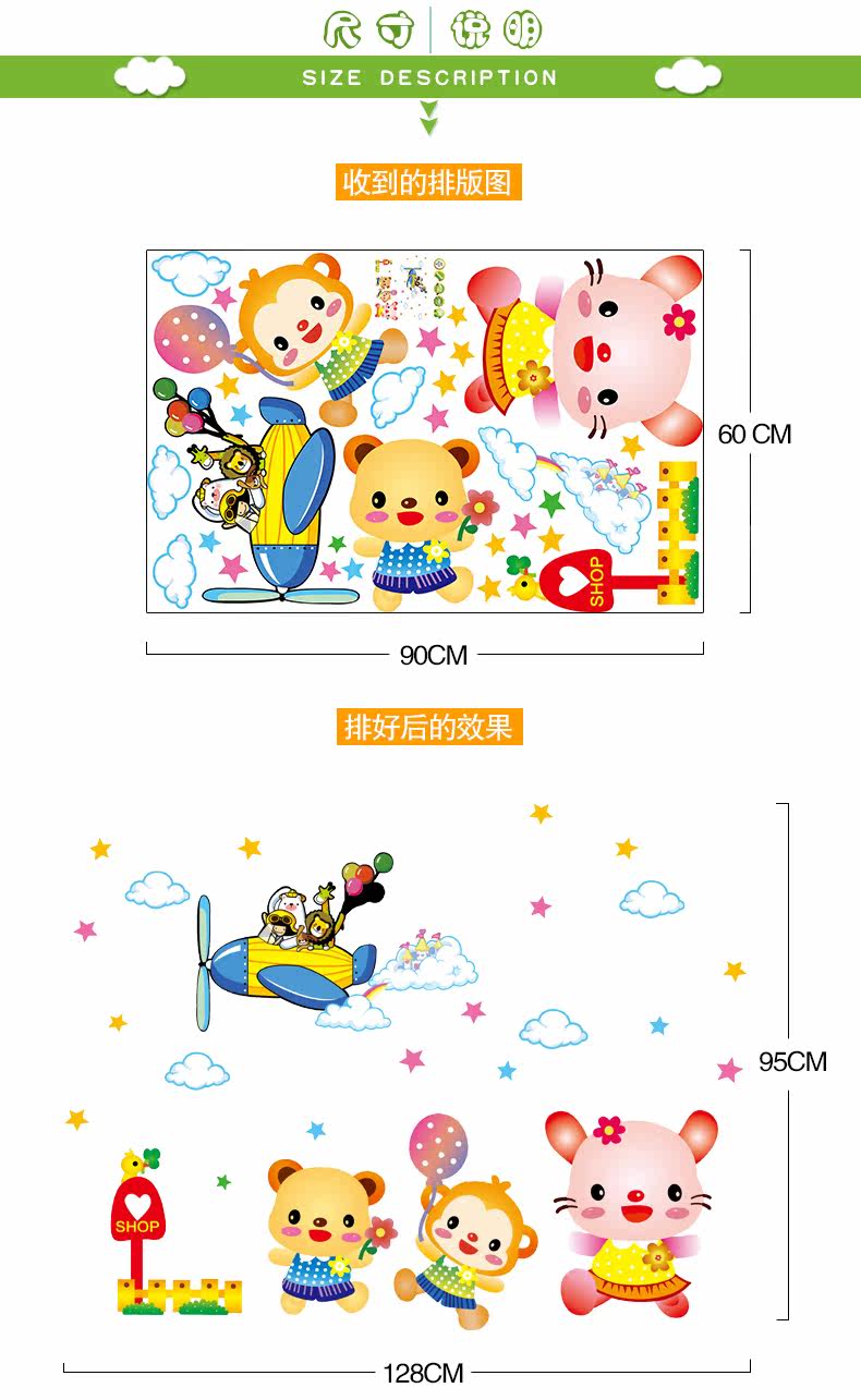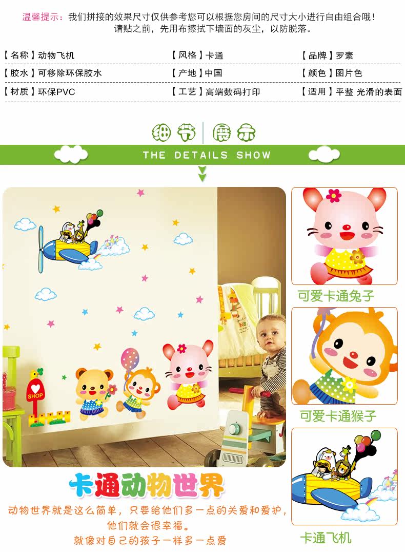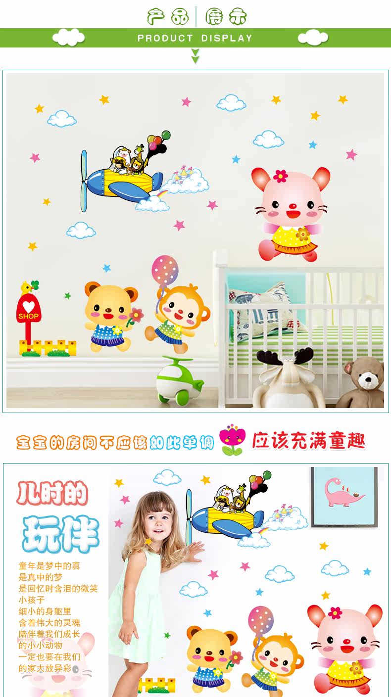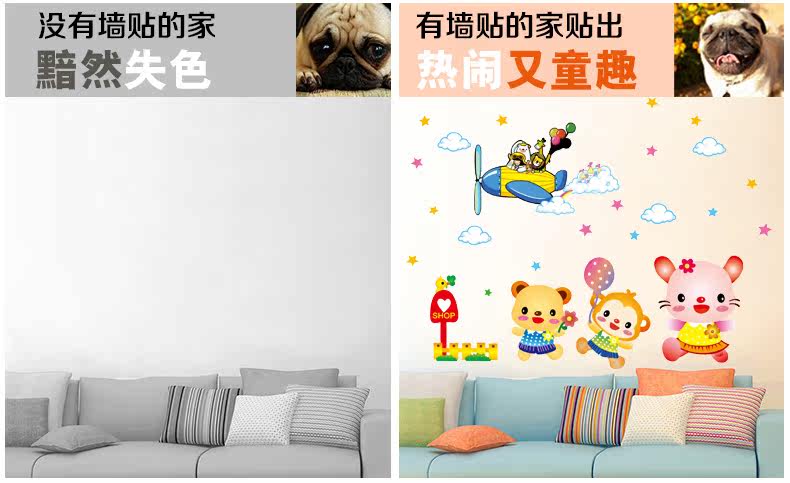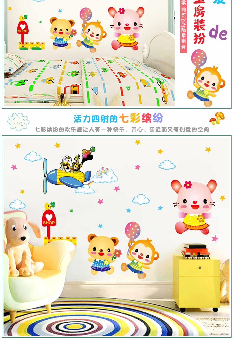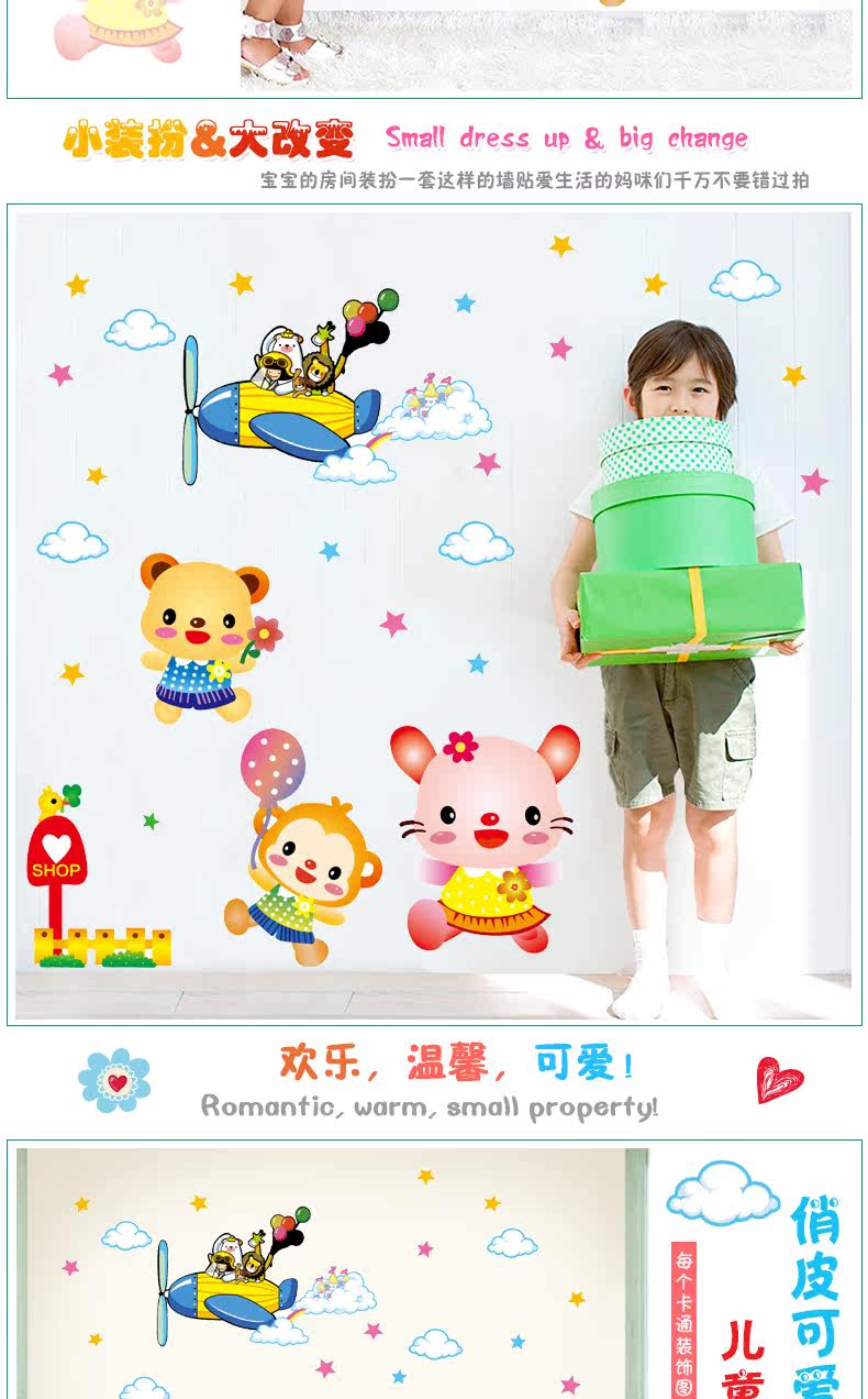动漫卡通动物可移除墙贴儿童房装饰品贴画客厅温馨卧室背景墙贴纸