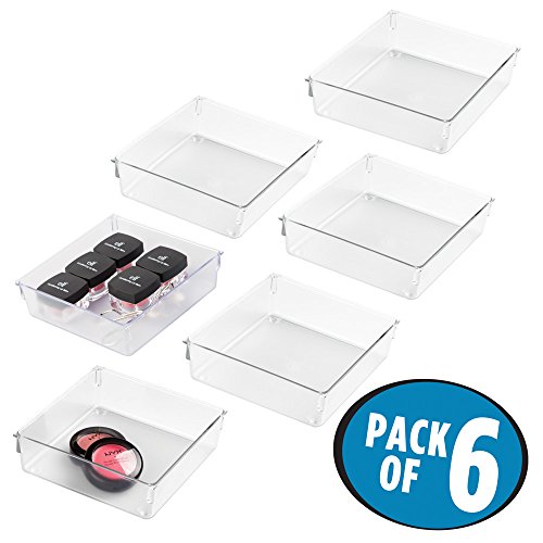 mDesign Cosmetic Drawer Organizer for Vanity Cabinet to Hold Makeup, Beauty Products - Pack of 6, Clear