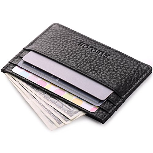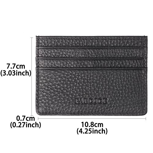Product Feature: ◆ Material:cowhide genuine leather ◆ Measures:(Lenght)7.7cm×(Width)10.8cm×(Thickness)0.7cm / (Lenght)3.03″×(Width)4.25″×(Thickness)0.27″(with a tolerance of 0.5cm(0.20″) to 1.0cm(0.39″) as result of everyone's different measurement technique.) ◆ Net Weight(APPR.):0.14KG ◆One color: black ◆ Open Closure type:no button,no zipper,just insert-in and pull-out ◆Gift Box's Package size(APPR.): (Lenght)14.4×(Width)11.5cm×(Thickness)3.4cm / (Lenght)5.67″×(Width)4.53″×(Thickness)1.34″ ◆ Package Weight(APPR.):0.24KG ◆ Brand:Pabojoe ◆ Country of origin:Made in ChinaPackage:polybag,and gift box 0