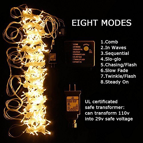 ✔Function:8 modes with in combination, in waves, sequential, slogs , chasing/flash, slow fade, twinkle/flash, and steady on. Directly plug in and unplug it for power on and off. The input voltage is 100-120V AC.
