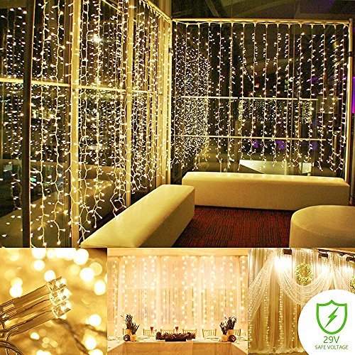 String lights Curtain, 300 LED Icicle Wall Lights, Fairy Indoor Starry Lights 8 Mode For Wedding, Bedroom, Christmas, Holiday, Home decoration, UL Certification(Warm white) (cold white) (warm white)