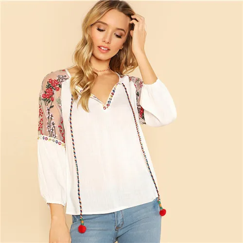 Decoration:Embroidery, Sheer, Contrast Mesh, Pom Pom