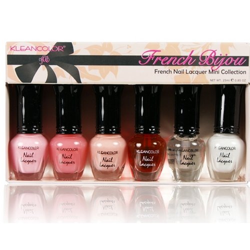 -. Binding : Health and Beauty -. Brand : Kleancolor -. EAN : 0885560146555 -. Feature : KLEACOLOR Presents New French Manicure Nail Lacquer Mini Collection / Features Very Long Wearing Chip-resistance / Travel friendly size / The set features all the essentials for the perfect french nails to complete / the look of girl-next-door who adores natural beauty. -. Label : KleanColor -. Manufacturer : KleanColor -. Model : NPC596 -. MPN : KCNPC596 -. NumberOfItems : 6 -. PackageQuantity : 1 -. PartNumber : KCNPC596 -. ProductGroup : Beauty -. ProductTypeName : BEAUTY -. Publisher : KleanColor -. Studio : KleanColor -. Title : KLEANCOLOR French Bijou - French Manicure Nail Lacquer Mini Collection (NPC596) -. UPC : 885560146555