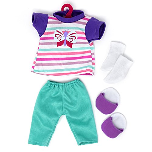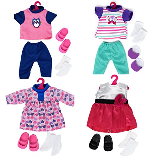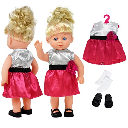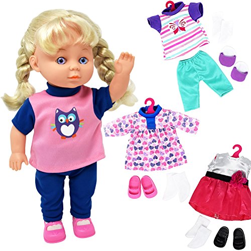 -. Title : Doll Clothes and Accessories Baby Doll Set, 12 Inch Doll Included with 4 Doll Outfits, Hair Brush, Shoes, Slippers and More