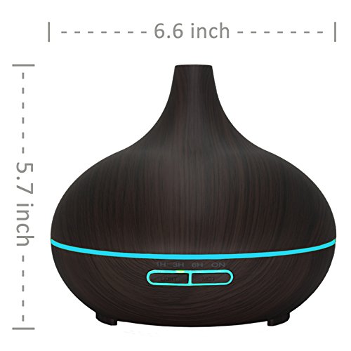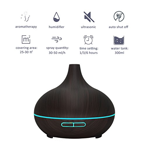 Essential Oil Diffuser 300ml Cool Mist Humidifier Ultrasonic Aroma with Multi-Color Light, Auto Shut-Off and Adjustable Mist Levels for Home, Office or...
