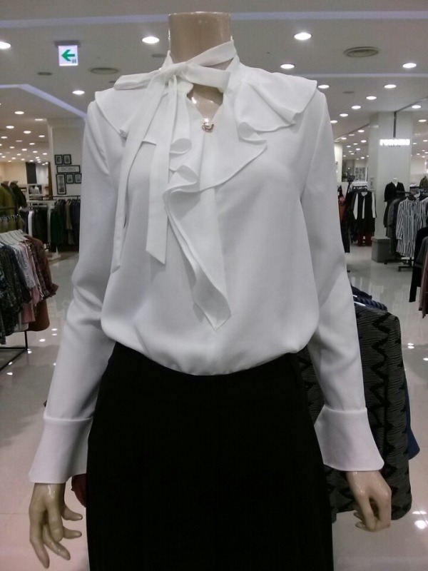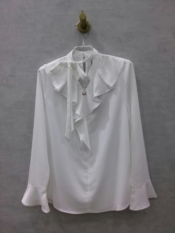 탈착가능한 리본타이와 볼륨감이 넘치는 진주포인트 프릴이 우아함을 선사해드릴 블라우스입니다~^^*