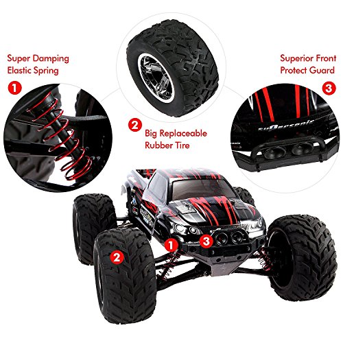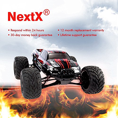 Studio : Geekper Publisher : Geekper Product Description S911 Blazing down the roads in fiery red, the NextX Off Road Monster Truck is sure to be a showstopper on the roads, and off the beaten track. Zooming by at 33 MPH, the sheer speed will keep your adrenaline pumping - whether you're 8 or 80. But of course, fast doesn't always mean furious. Especially if the controller's in the hands of your child, we understand that safety is key. That is why we've equipped this radio controlled truck with the finest safety gear, so that the system will prevent the truck from overheating, overcurrent and overcharging. In a sturdy and water-resistant body, the truck will be able to take a hit from any fierce storms and knocks that comes its way. Controller out, car positioned - you're in a for a wild ride! Specifications: - Frequency: 2.4GHz - Drive system: rear 2WD - Top Speed: 33 MPH - Driving time: 10 min - Charging time: 60min - Control distance: about 100m - Function: Forward/Backward, Left/Right Driving, Support Electronic Speed Control - Battery: 2 x rechargeable 9.6V 800mAh Li-polymer battery pack - Transmitter battery: 2 x AA battery (NOT included) - Suitable for : Ages 8 Package Contents: - 1 x RC Off-road Truck - 1 x Transmitter - 2 x 800mAh Li-polymer Battery Pack - 1 x Charger - 1 x Screwdriver - 1 x Hex Wrench - 1 x Steering Wheel - 1 x User Manual Warranty: We want you to get your engines revved up with complete ease. So if there's anything less than satisfactory with your purchase, connect with us via email and we'll get back to you within 24 hours. And because we always put out money where our mouth is, we guarantee you our: - 30-day money back guarantee - 12 month replacement warranty - Lifetime support guarantee