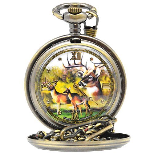 -. Binding : Watch -. Brand : Sigma Impex -. Color : gold -. Department : mens -. EAN : 0841932125795 -. Feature : Watch features an intricately detailed cutout design on the lid, encasing a 1.5" dia. watch with gold-look Roman numerals, and a full-color image depicting a pair of deer. / Hangs from an 11.5"L link chain and clip. / Presented in 3.5" x 3.5" x 1.5" collector's box. / Brushed-metal finish. / Japanese quartz movement. -. Label : Johnson Smith Co -. Manufacturer : Johnson Smith Co -. Model : 0841932125795 -. MPN : 86883 -. PackageQuantity : 1 -. PartNumber : 86883 -. ProductGroup : Watch -. ProductTypeName : WATCH -. Publisher : Johnson Smith Co -. Studio : Johnson Smith Co -. Title : Brushed Metal Deer Pocket Watch Has Detailed Cutout Design Lid & Color Face -. UPC : 841932125795