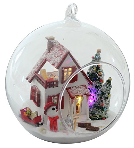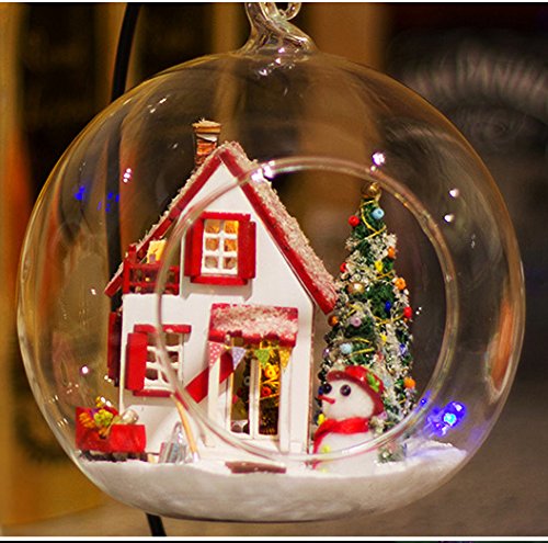 -. Title : Cuteroom DIY Mini Glassball Wooden Dollhouse Miniature Kit with Voice Control LED--Christmas Eve