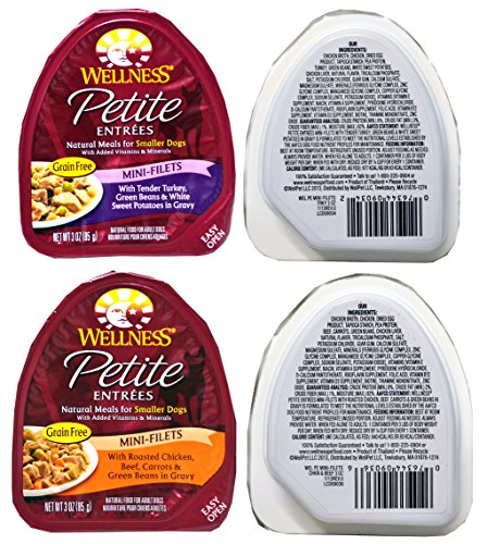 -. Title : Wellness Petite Entrees Natural Grain Free Wet Dog Food Variety Pack - 8 Different Flavors - 3 Ounces Each (8 Total Entrees)