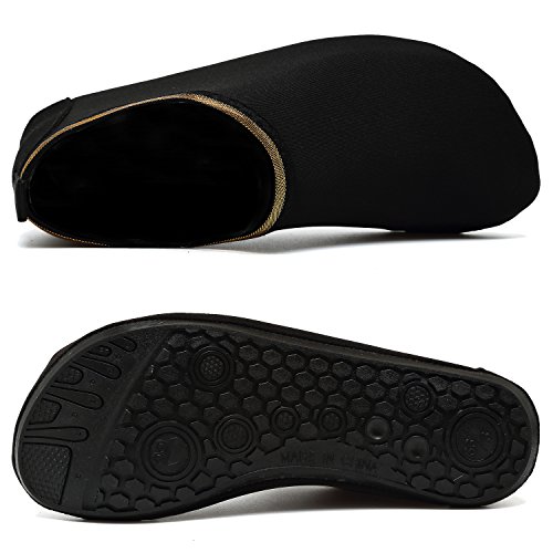 -. Feature : DRAINAGE HOLES: Unique and top-quality sole with seven holes on each bottom to ensure proper water flow out of them. / CONVENIENCE: Smooth neck design prevents chafing when wearing our water shoes. It is convenient to wear and take off. / EXERCISE OF FOOT MUSCLE: By using foot muscle almost same as barefoot walking, exercise of foot muscle and toe pressure effect for sole are available. / VARIOUS SIZE AVAILABLE: From S to XXXL for Women and Men.( For the length, Please Refer to Product Description). / IDEAL FOR ANY ACTIVITY: Perfect for beach, swimming, surf, pool, sailing, boating, kayaking, windsurfing, yoga and other any activity.